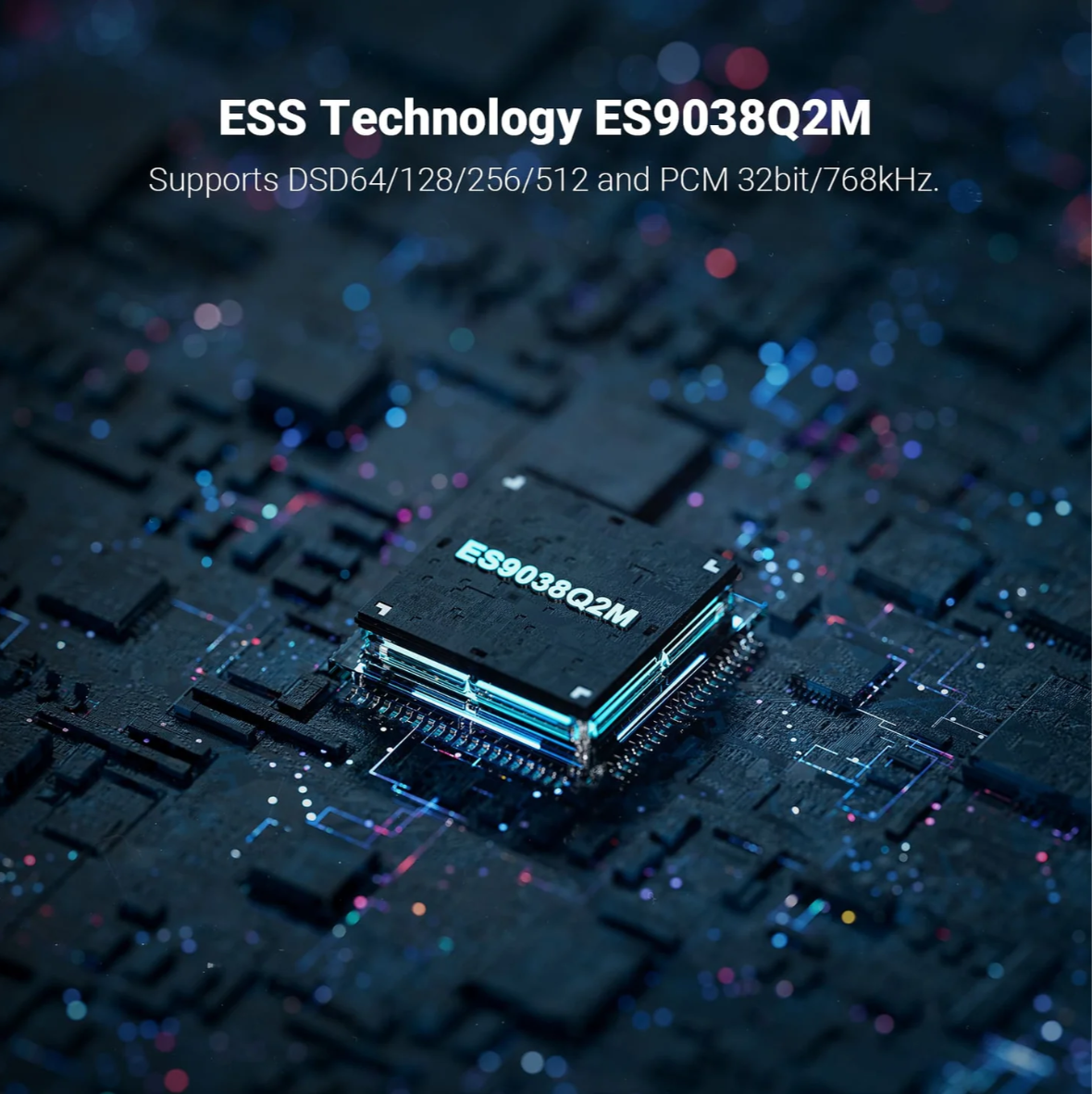 - DS1 adopts ESS Technology ES9038Q2M DAC Chip supporting DSD 512 and 32Bit/768kHz PCM, features best-in-class specifications and high-power outputs capable of supporting the most demanding of headphones with impedance above 200Ω.