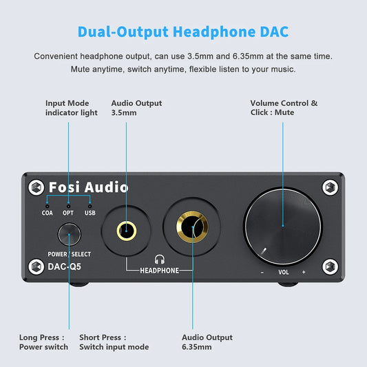 Fosi Audio Q5 DAC Converter Digital-to-Analog Adapter Decoder & Headphone AmplifierRegular price $69.99Regular priceUnit price / per-